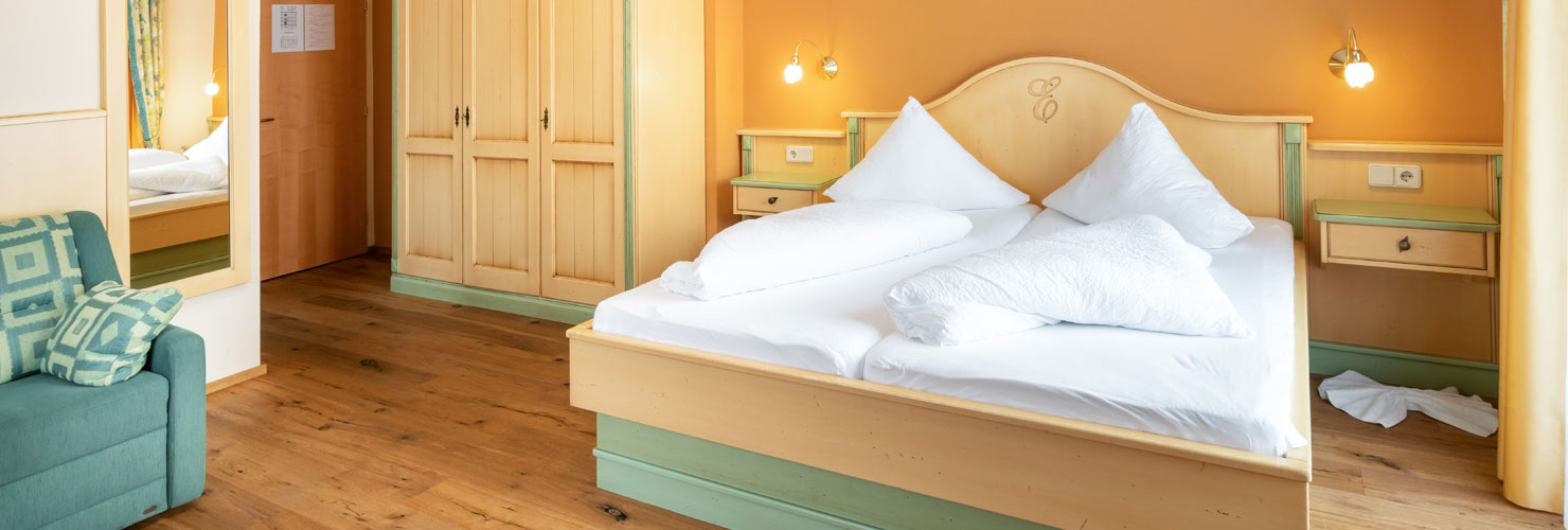 Zwei unserer Zimmer verfügen über eine Verbindungstür und sind so neben den Familienzimmern ideal geeignet, Groß und Klein gemeinsam zu beherbergen. Sämtliche unserer Zimmer sind auch als Einzelzimmernutzung möglich.